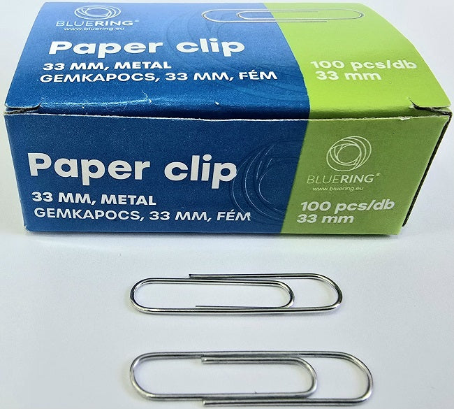 | Book Title | Blue Ring, Paper Clip, Silver, Regular Size, 33mm, 100 count |